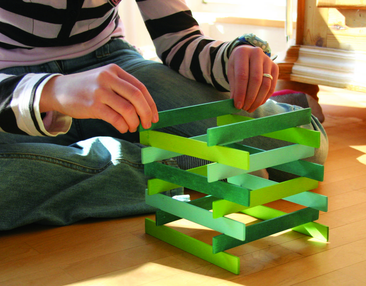 Siguiendo 3 pasos de construcción sencillos y fáciles de seguir, vamos colocando las tablillas de tal manera que ¡se van elevando de forma mágica!