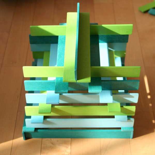 Son más finas que las de Kapla y son de madera de tilo, que es más flexible me parece a mí, aunque no soy experta en maderas 🙂