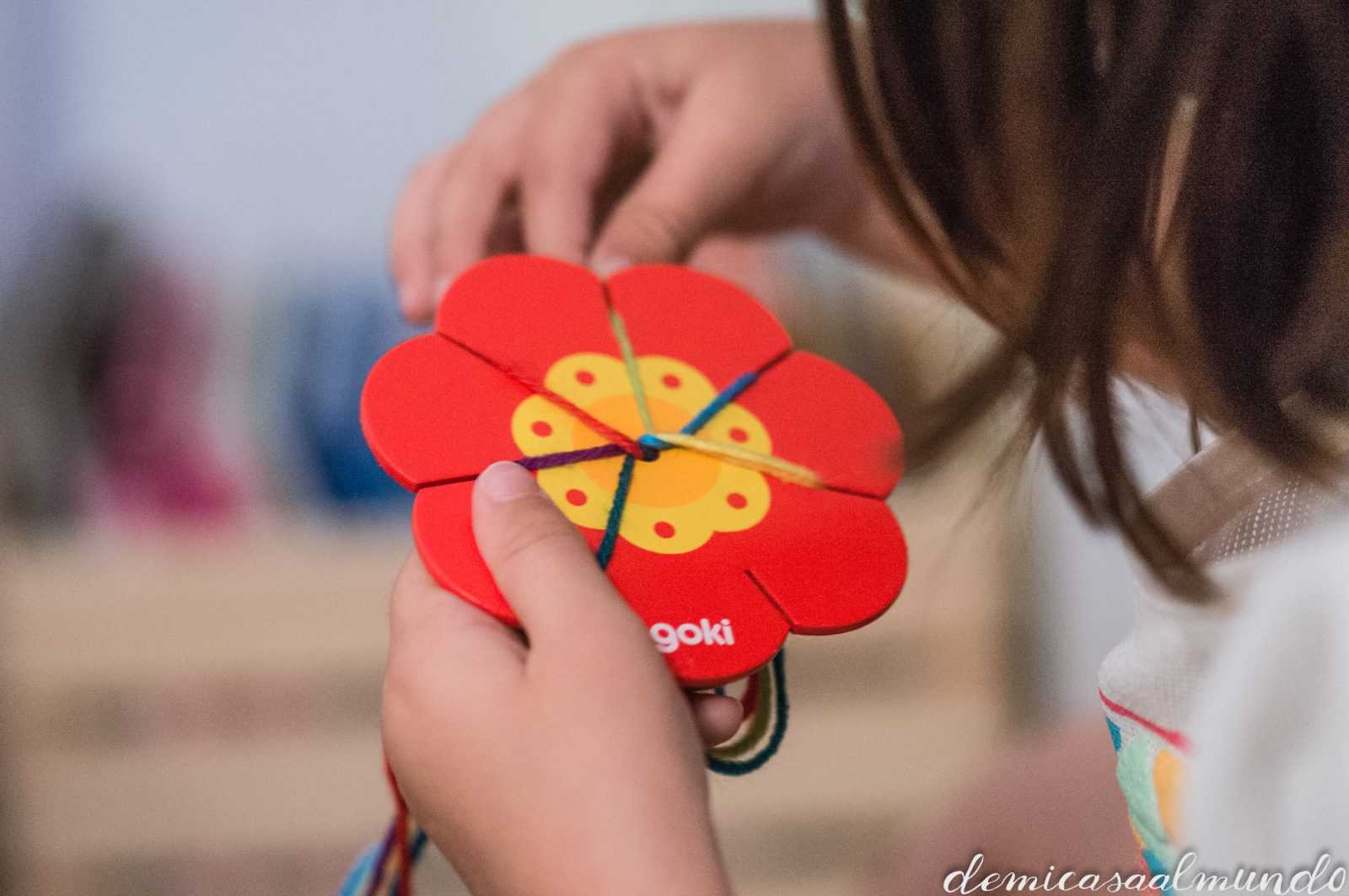 De telares mini, que se pueden utilizar a partir de los 3 años, tenemos varios (te los enseñé aquí), este en concreto le gusta mucho porque no pesa apenas y le encanta que sea una flor. (Puedes encontrarlo aquí).