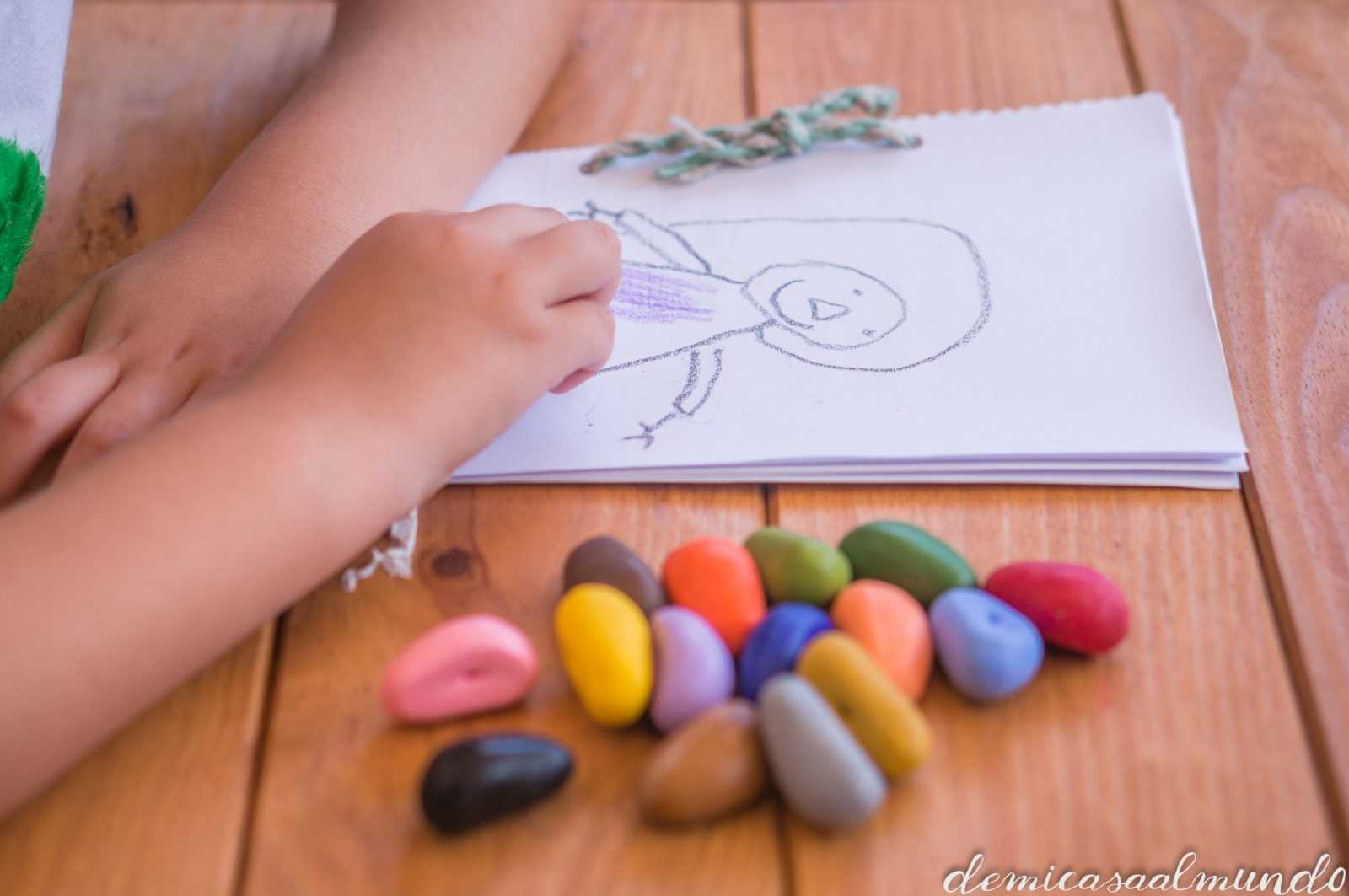Para pintar llevamos siempre algo pequeño tipo la bolsita de tela de los Crayons Rocks que son geniales por tamaño y gama de colores (los nuestros son de Alupe).