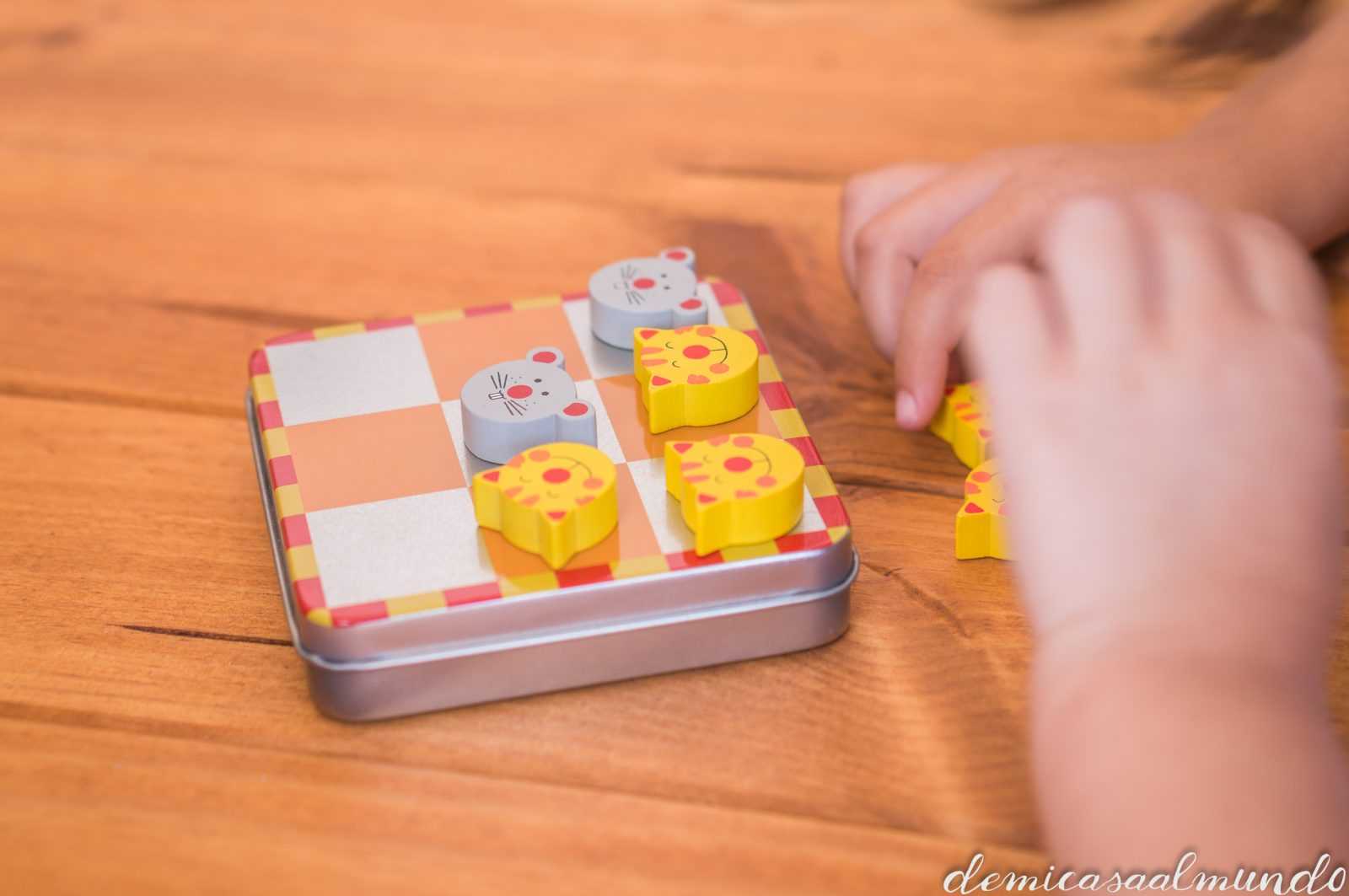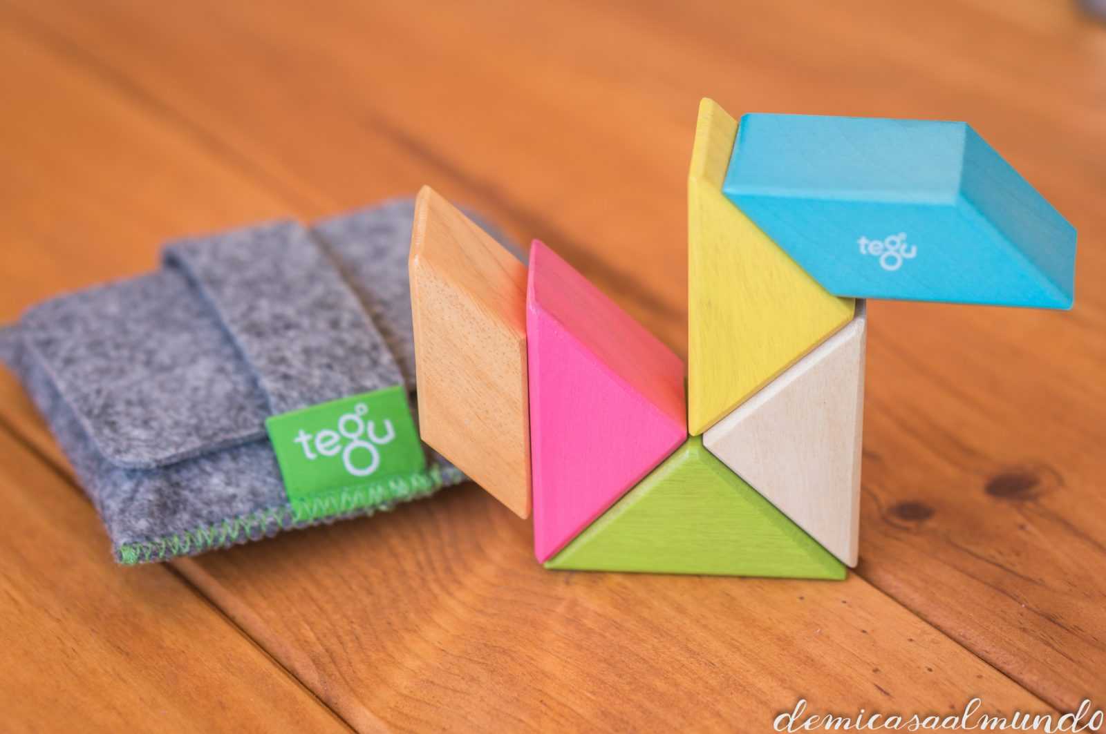 Otra opción genial que descubrí en EEUU y que teníamos muchas ganas de probar es el juego imantado de bolsillo TEGU. Es una especie de Tangram de madera con algunas variaciones, aunque permite construir muchas figuras similares, y al ser piezas imantadas es otra forma de jugar muy interesante y más cómoda para el avión. Además lleva una bolsita de fieltro muy práctica para guardarlo.
