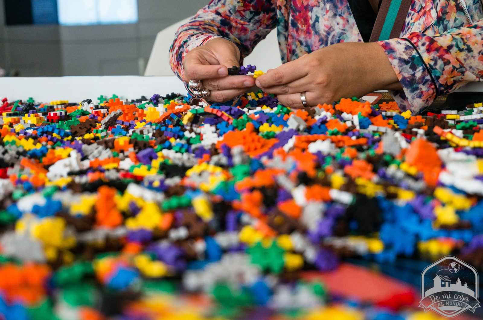 En Noruega descubrimos los plus-plus, pequeñas piezas de construcción de colores que no pesan nada y que se pueden llevar a cualquier parte metidas en una bolsita de tela. Además son geniales porque permiten construir en 2D y en 3D y en superficies reducidas como la bandeja del avión.