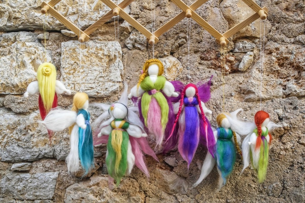 Por cierto, me apetece mostrarte otras hadas que hemos ido haciendo en el taller de artesanía en el que participamos un grupito de mamás Waldorf todas las semanas. Como puedes ver, todas diferentes, cada mamá tiene su propio estilo. La mía es la del medio, la verde y rosa con trenza…