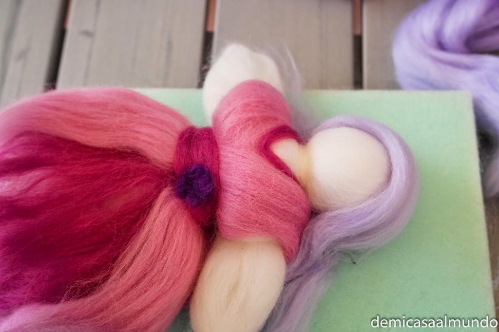 Una de las cosas que más me sorprendió cuando empecé a trabajar con lana cardada, es que se puede fijar con estas agujas, y sólo pinchando (a veces parece que haces vudú), pero sí, se quedan sujetas. Es muy guay.